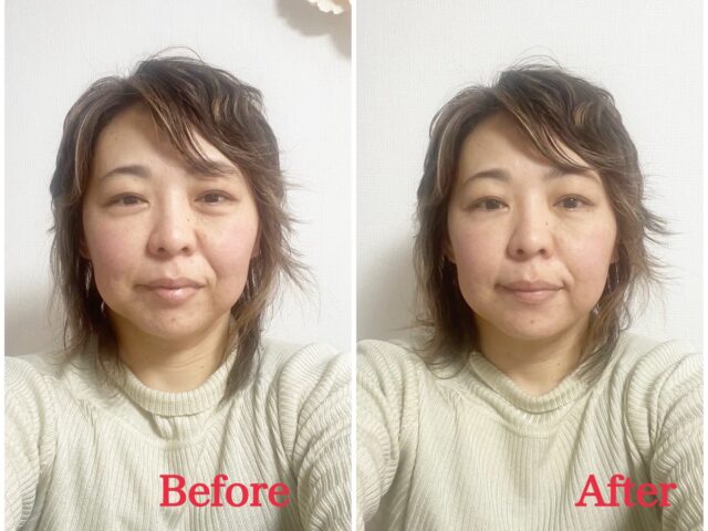 さらにびっくりしたのが、帰宅して3時間後くらいに鏡を見た時、施術直後よりさらに顎がシャープになっていたことです。身体全体の巡りが良くなったおかげなのでしょうか。